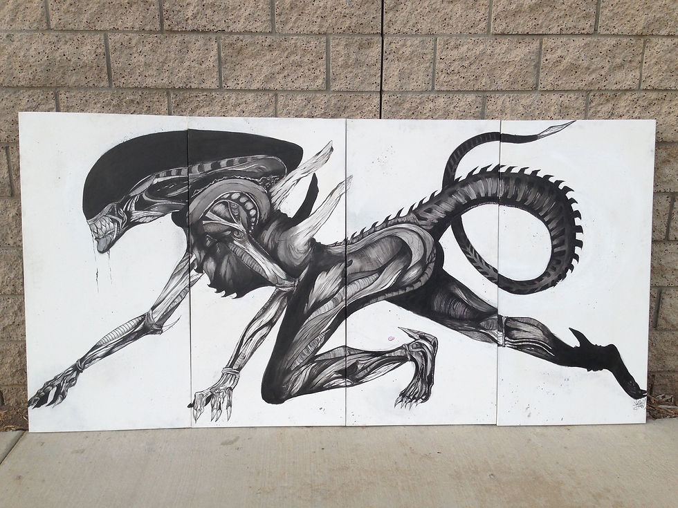 Alien was painted in India Ink and was completed in 12 hours (a single day).